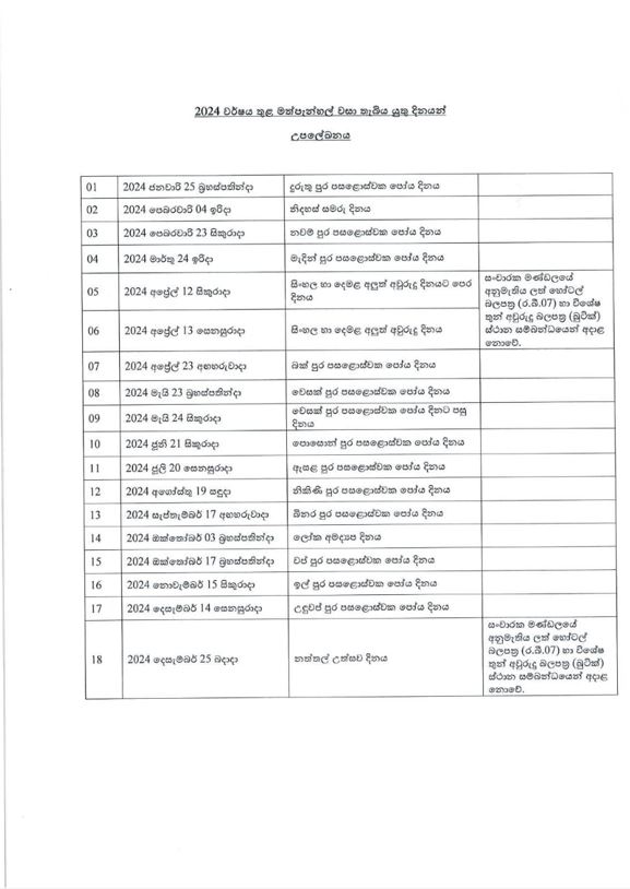 සුරාසැල් වසා තැබෙන දින පහතින්,