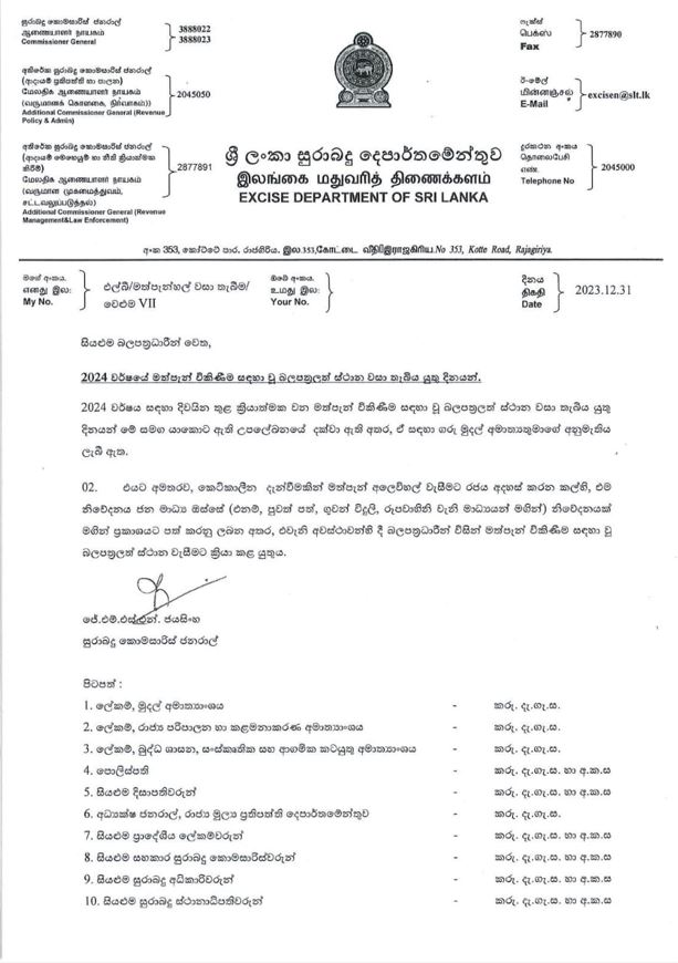 මෙම වසරේ සුරාසැල් වැසෙන දවස් මෙන්න
