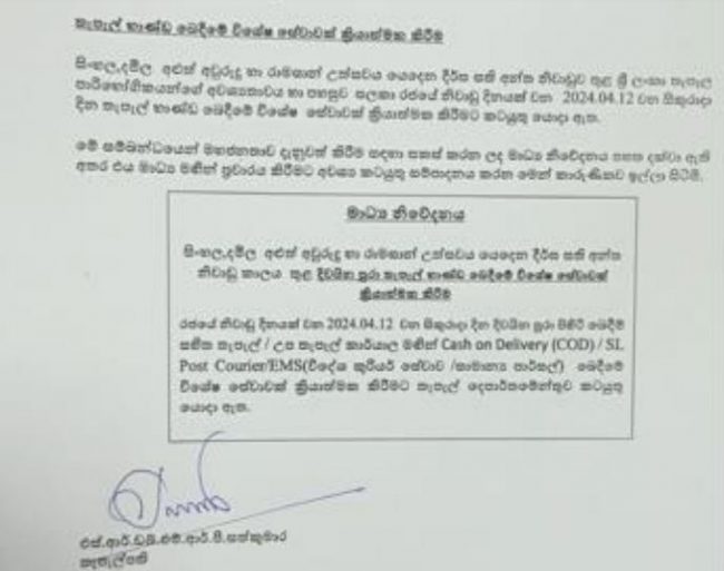 ඒ අනුව රජයේ නිවාඩු දිනයක් වන අප්රේල් 12වැනිදා දිවයින පුරා බෙදීම් සහිත තැපැල්/උප තැපැල් කාර්යාල මගින් – Cash-on-Delivery, විදේශ කුරියර් සේවාව සහ සාමාන්ය පාර්සල් බෙදීමේ විශේෂ සේවාවක් ක්රියාත්මක කිරීමට සැලසුම් කර තිබෙනවා.