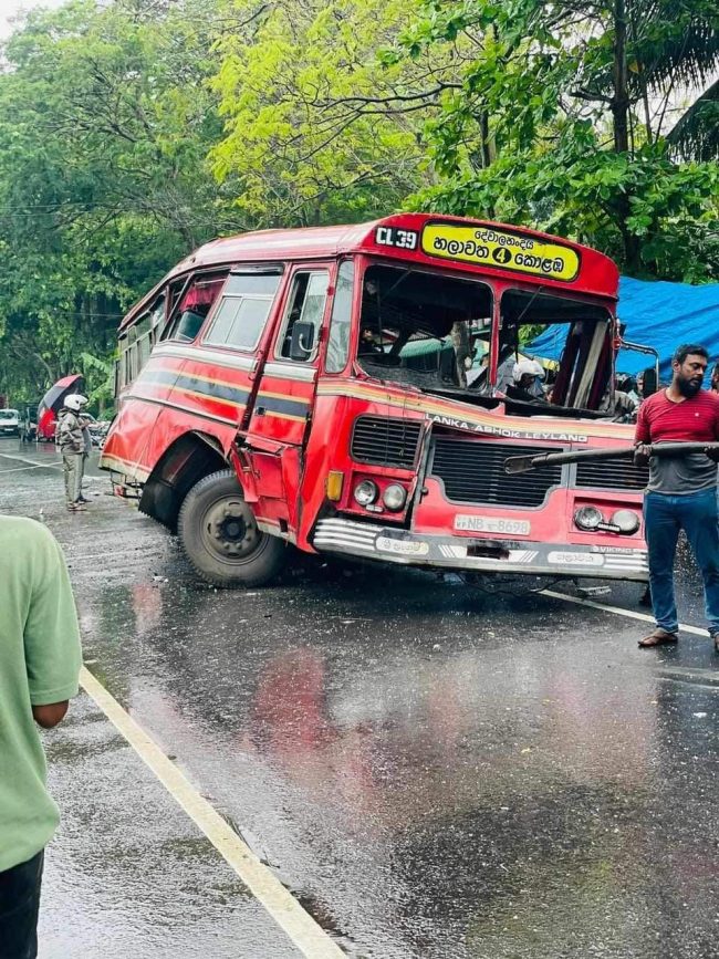 කොළඹ සිට හලාවත බලා ධාවනය වූ ශ්‍රී ලංගම බස් රථයක් සහ ලොරි රථයක් එකිනෙක ගැටීමෙන් අද පෙරවරුවේ මෙම අනතුර සිදුව ඇති බව සඳහන්.