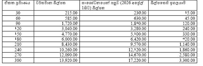 2026 වසරේ දෙවන කාර්තුව සඳහා විදුලි බිල ඉහළ දැමීමට මහජන උපයෝගීතා කොමිසම ඒකමතික තීරණයක් ගෙන තිබේ.